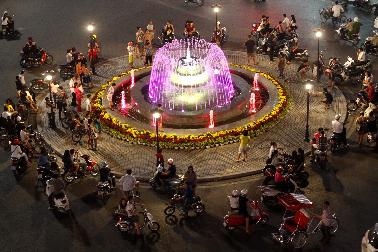 Stolica Wietnamu wieczorem staje się miejscem spotkań . To niewiarygodne, jest wtedy jeszcze bardziej gwarno. Po godzinie 23 miasto jednak zaczyn wymierać, a tuż po północy policja jeździ po mieście i przez megafon nakazuje właścicielom barów gasić światła.