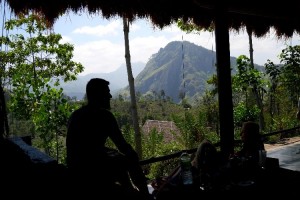 Dziś opiszę zupełnie inny rodzaj transportu po Sri Lance. Bo cóż można robić na tej przepięknej wyspie, oprócz zwiedzania świątyń, wiosek i miasteczek, jeżdżenia pociągami i tuk-tukiem? Otóż można ruszyć „z buta” w góry. Na Sri Lance są super widokowe pasma gór i dzisiaj właśnie, zaraz po śniadanku ruszyliśmy w drogę aby się trochę zmęczyć i podziwiać to co oglądaliśmy do tej pory z okien pojazdów. Na Sri Lance nie ma typowych szlaków, jednakże turyści wydeptali dosyć szerokie ścieżki na najważniejsze i najładniejsze wzgórza i nie ma problemu ze zlokalizowaniem trasy. Na pierwszy ogień poszła góra o nazwie Mały Adam (1141 m). Po drodze mijaliśmy mnóstwo turystów jak i lokalnych „biznesmenów” oferujących za $ możliwość zdjęcia z małym Lankijczykiem, małpką albo kobrą. Jako że trasa biegła wśród plantacji herbaty, Lankijki zbierające liście, równie chętnie pozowały do zdjęć. Z Adama rozpościerają się zatykające dech w piersiach widoki na całe pasmo gór przeciętych wąską tasiemką asfaltu oraz na Ellę z budującymi się na stokach hotelami. Na szczycie Adama oczywiście wylegiwało się kilka psów, które Kinga uraczyła wodą, pozbywając się swojego zapasu. Wracając z Adama wstąpiliśmy do restauracji ekskluzywnego hotelu, (znajdującego się na zboczu Adama), wyposażonego w lądowisko dla helikopterów, luksusowy basen oraz obsługę która pomiędzy domkami krytymi strzechą, porusza się melexami (wózkami na prąd). Kinga zdążyła sprawdzić cenę za dobę i okazało się, że za 150$ to można dużo ciekawszych rzeczy zobaczyć. Wczorajszego dnia, jadąc do Buduruwagali, czujny jak wąż Przemek, zauważył drogowskaz do jaskini Rawana, którą dodatkowo postanowiliśmy dziś odwiedzić. Czujny, bo jego obiektywowi nie umknie żadna okazja do zrobienia fotek, których ma zresztą już tysiące i każdy liczy, że uda mu się coś od niego wysępić ;). Z Adama widać było drogę do jaskini, lecz ta znajdowała się po przeciwnej stronie doliny i aby tam dotrzeć musieliśmy zejść na dół kotliny aby ponownie wspiąć się prawie na wysokość Adama lecz z drugiej strony. Trochę nam to zajęło… grupa się rozciągnęła i dotarła do podnóża jaskini w podgrupach. Okazało się, że do jaskini prowadzi kilkaset schodów. Celowo piszę że kilkaset, ponieważ miało ich być 500, a przy 600 przestaliśmy liczyć, a końca nie było widać. Przy temperaturze +33 st. C uwierzcie mi, że pot leje się z człowieka ciurkiem i wielki szacun dla naszych SKS-ów, tudzież nazywanych sarkofagami, że nie odpuścili i chwilę po nas byli na samym szczycie. SKS – czyli Stowarzyszenie Krewkich Seniorów – daje radę 🙂