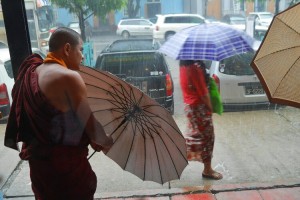 Dzisiaj rano rozpoczęliśmy naszą birmańską wyprawę lądując w największym mieście Birmy – Yangon. Przesiadkę mieliśmy w Doha, gdzie wychodząc z samolotu zderzyliśmy się z 44-ro stopniowym powietrzem. Na szczęście w Birmie nie jest tak gorąco i o 6 rano było 26 st. C., ale niestety pada. W lipcu jest tutaj pora deszczowa, więc opadów jest dużo. Pierwszego dnia w Yangon spacerowaliśmy w centrum odwiedzając dwie pagody: Sule i Botahtaung. Ta pierwsza znajduje się na środku ronda w pięknym otoczeniu: stoi bowiem wśród kolonialnej zabudowy, która jest pozostałością po Brytyjczykach. Nie jest jednak łatwo się do niej dostać, ponieważ mimo tego, że jesteśmy na pasach dla pieszych kierowcy trąbiąc przejeżdżają nam swoimi autami przed nosami. Pagoda Botahtaung oddalona jest od ścisłego centrum i leży nad rzeką Yangon. Relikwiami w tej świątyni są drobne kości Buddy, oraz jego włos. Zwiedzając cały dzień Yangon na przemian otwieramy i zamykamy parasole, ponieważ pogoda jest bardzo kapryśna.