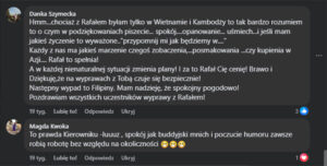 Wyprawy z Rafałem to przede wszystkim bezpieczeństwo, otwartość na ludzi, poznawanie ich obyczajów, kultury, czy też co w Wietnamie jest chyba najlepsze, kuchni. Jeszcze kilka krajów w Azji chcę odwiedzić, i nie wyobrażam sobie, aby nie byłoby to z Rafałem. Dziękuję.