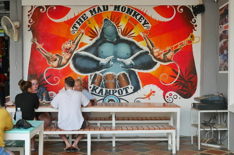 “Jeżeli szukacie cichego i spokojnego hotelu to nie trafiliście dobrze” – tak nas przywitała recepcjonistka w hotelu w Kampot, gdzie śpimy jedną noc. Mad Monkey Hostel Kampot. Takie graffiti na ścianach.