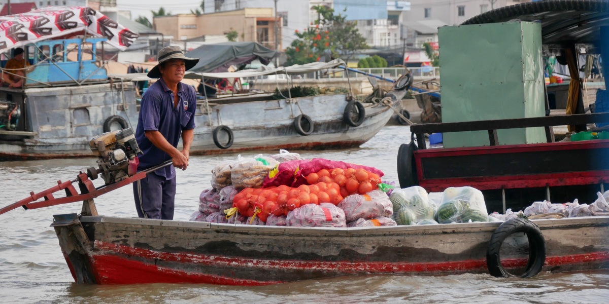 Delta Mekong nazywana jest “owocowym koszem Wietnamu”. Na największym targu wodnym Cai Rang z dużych łodzi hurtowo sprzedaje się owoce wyprodukowane w delcie. Z roku na rok targ jest coraz mniejszy, ustępuje bowiem tym na lądzie.