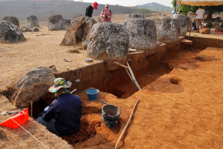 Nasza wycieczka do Laosu cały czas kieruje się na północ kraju. Na jedną noc zatrzymujemy się w Phonsavan. Miasto znane jest z tego, że kilkanaście kilometrów od centrum znajduje się Równina Dzbanów. To kilkadziesiąt stanowisk, a w każdym z nich do 400 kamiennych naczyń, które prawdopodobnie pamiętają narodziny Buddy (VI-V w p.n.e.). Naukowcy podejrzewają, że służyły do składania prochów ludzkich po kremacji, ale wersji jest kilka: mógł to być zbiornik na wodę, naczynie do produkcji alkoholu, czy miejsce do umierania. Natomiast legenda mówi, że potwory o dużych ciałach zrobiły imprezę i nie posprzątały szklanek. Badania nadal trwają, nawet dzisiaj na stanowisku pracowali archeolodzy. Być może byliśmy świadkami wiekopomnego odkrycia, ponieważ archeolodzy wyciągnęli z ziemi kamienne, zaostrzone przedmioty służące pewnie prehistorycznym ludziom jako narzędzia.